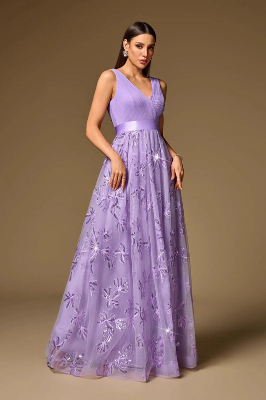 Purple Spaghetti Straps Appliques Chiffon Prom Dresses