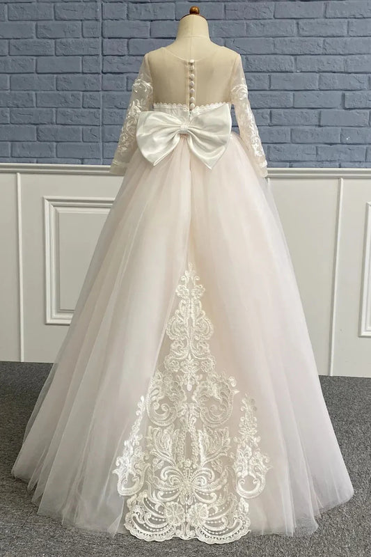 Ivory Lace Sweetheart Long Sleeve Girl Party Dress