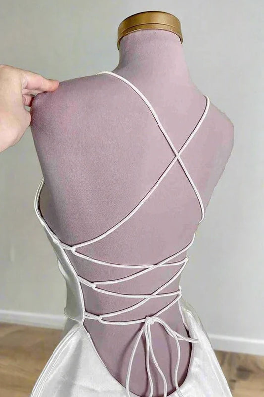 Spaghetti Straps V-Neck Pleated Satin Tight Homecoming Dress