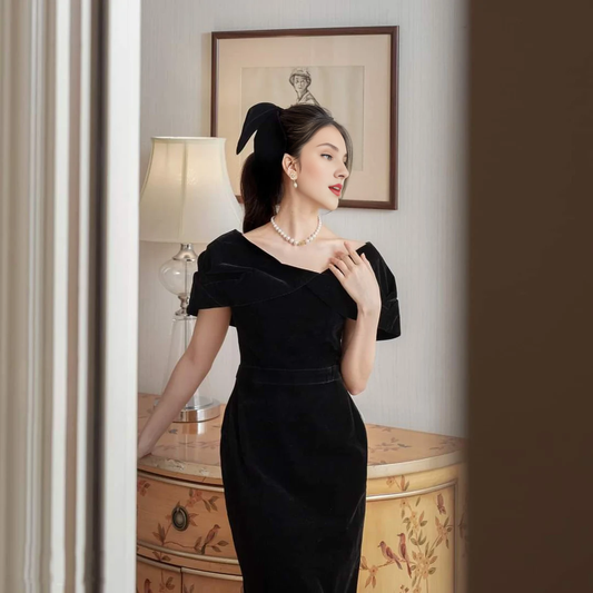 Cover Shoulder Midi Velvet Dress Bodycon Midi Dress Wedding Guest Party Dresses