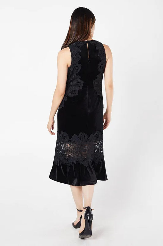 Velvet And Lace Peplum Hem Midi Dress Wedding Guest Dresses Cocktail Dresses
