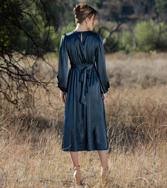 Long Sleeves Satin Wedding Guest Dress Elegant Dress Trendy Formal Dress Dating Dress