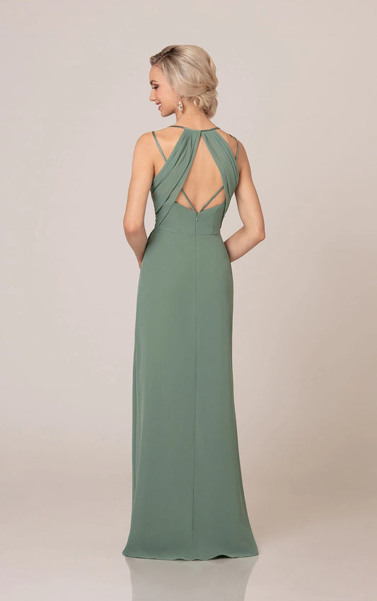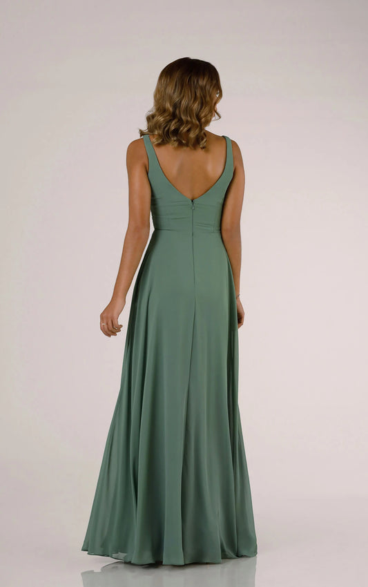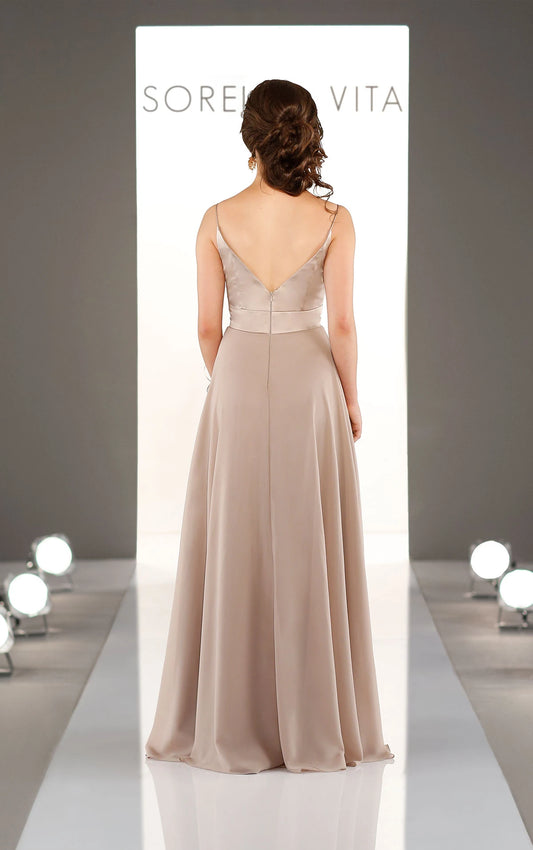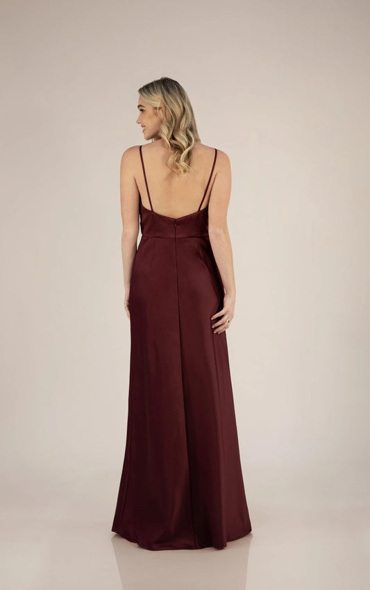 V-Neckline Wrapped Bridesmaid Dress with Skirt Slit
