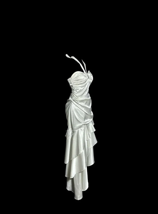 Mermaid Halter Satin High Low Evening Dress Prom Dresses