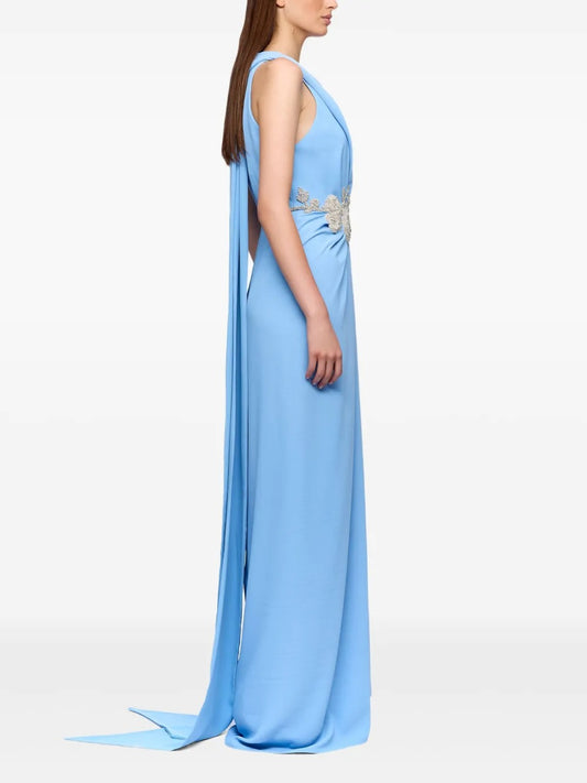 Ethereal Sky Blue Plunge V-Neck Embellished Maxi Dress