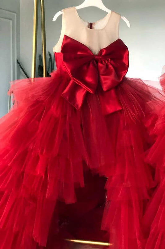 Multi-Tiered Bow Front High-Low Girl Party Dress