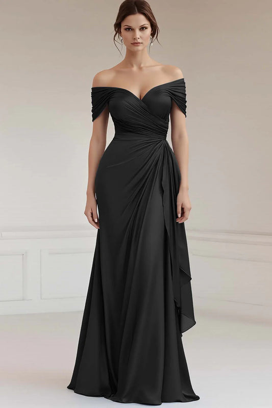 Elegant Sheath Gold Wedding Guest Dresses Satin Off-shoulder Gold Evening Dresses