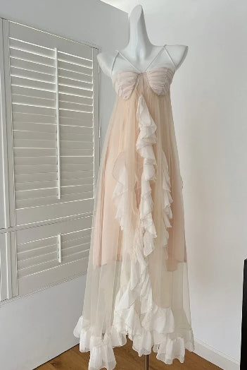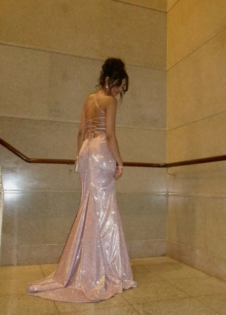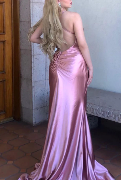 Pink Spaghetti Straps Satin Sleeveless Long Party Prom Dress