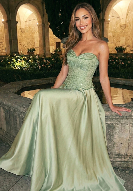 Chic Green Satin Off-the-Shoulder Lace-Up Back Formal Evening Party Dress