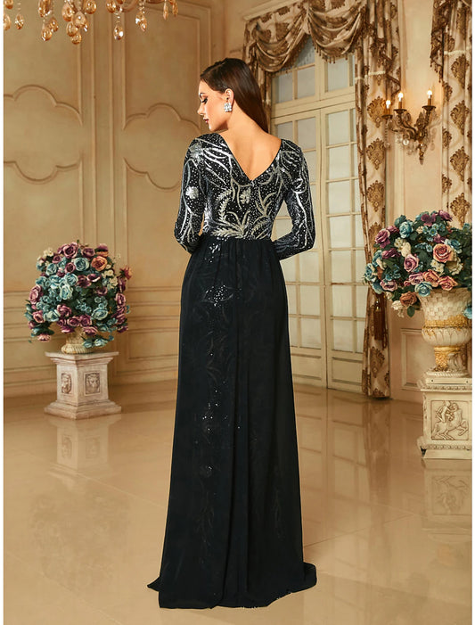 Sheath / Column Evening Gown Elegant Dress Formal Fall Ankle Length Long Sleeve High Neck Stretch Fabric with Sequin