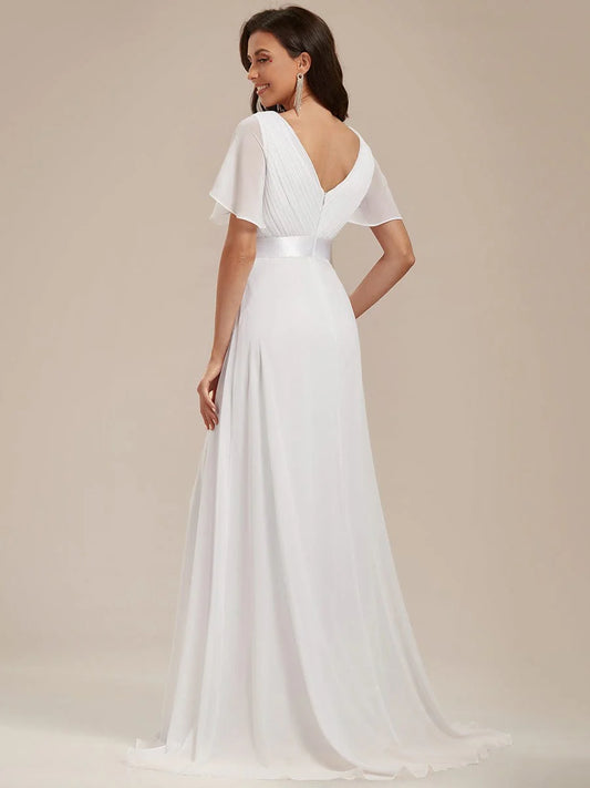 Lace tulle wedding dress with flutter sleeves in Ivory wide