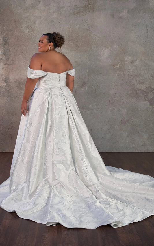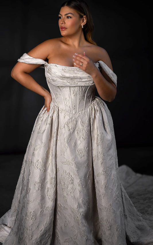 Off-the-Shoulder Silk Plus Size Ballgown Wedding Dress