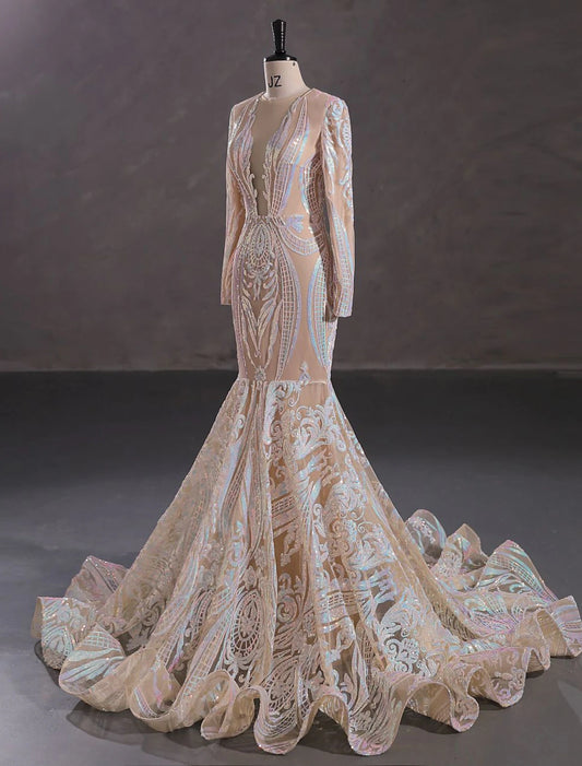 Elegant Mermaid Court Train Simple Lace Wedding Dress