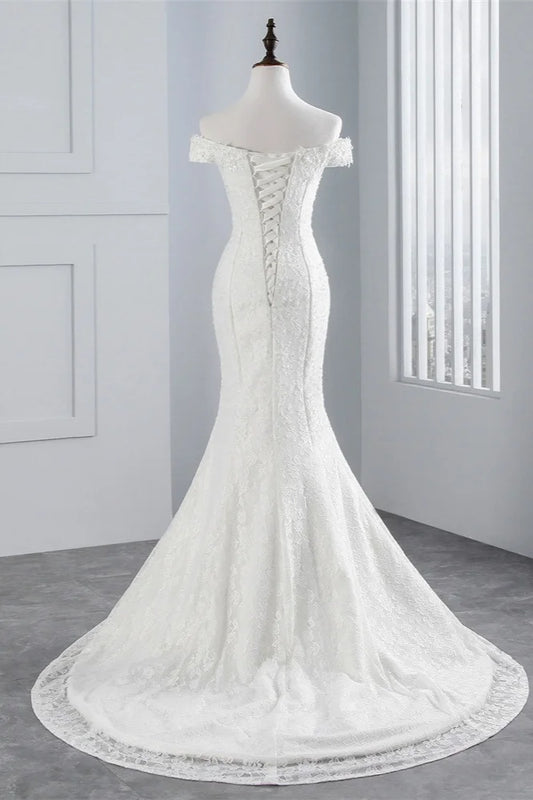 Mermaid Off-the-Shoulder Bride Gown Long Wedding Gown With Lace