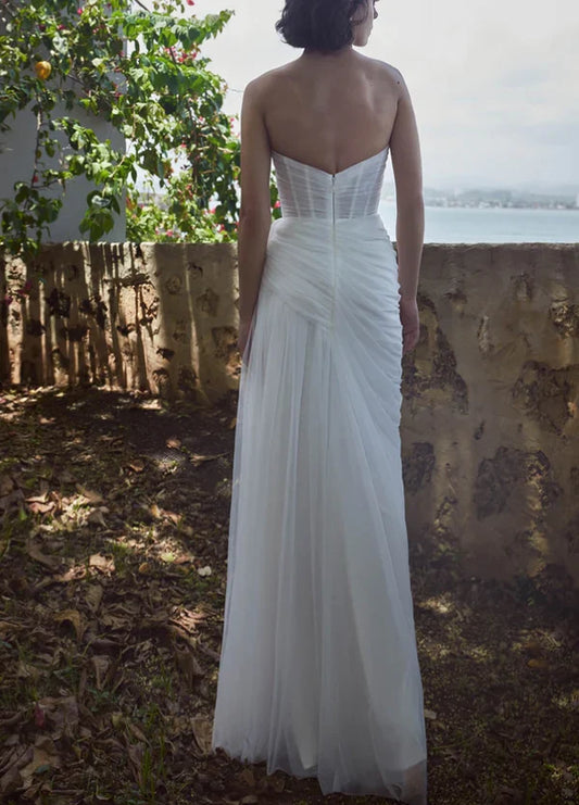 Front slit tight fitting sweetheart chiffon wedding dress