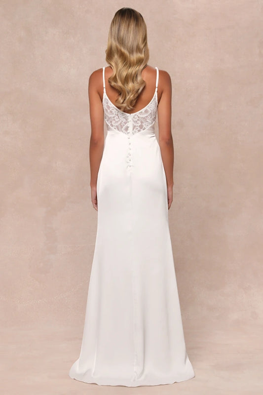 White Satin Cowl Neck Mermaid Maxi Dress Simple Wedding Dresses