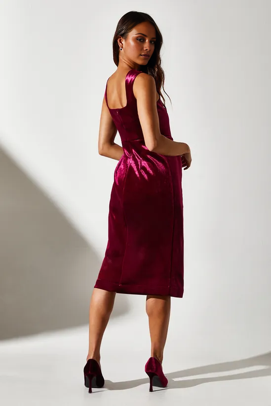 Petite Square Neck Bonded Velvet Pencil Dress Wedding Guest Dresses