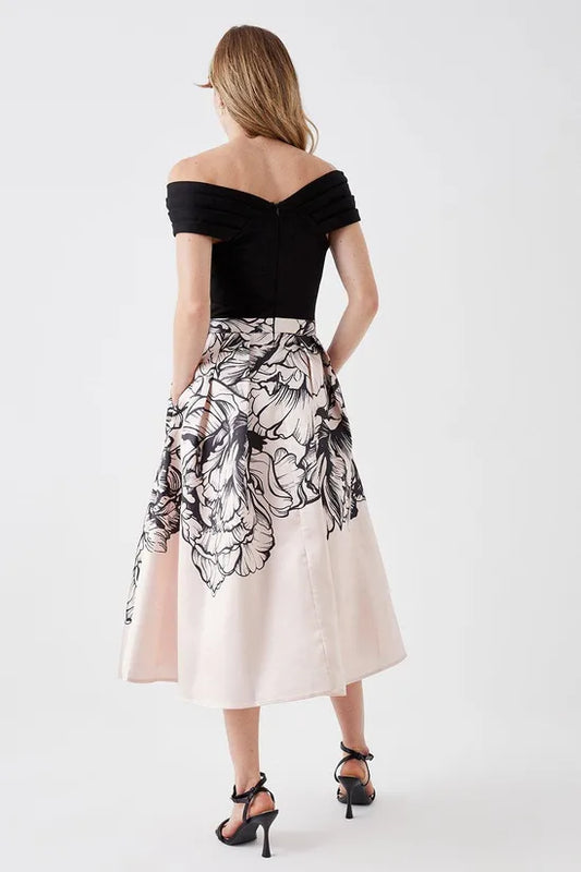 Petite Twist Top 2 In 1 Twill Dress A-Line Off Shoulder Wedding Guest Dresses