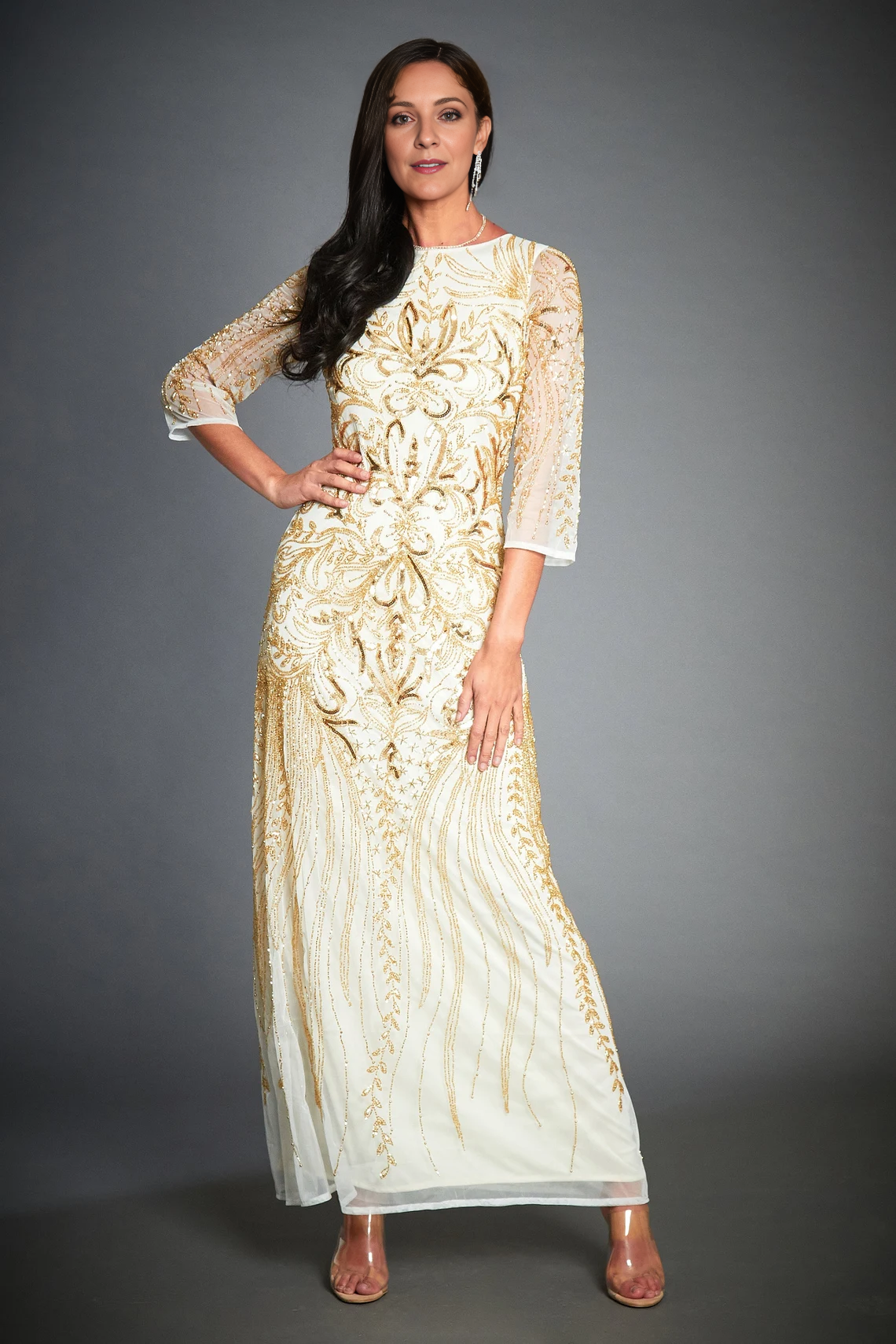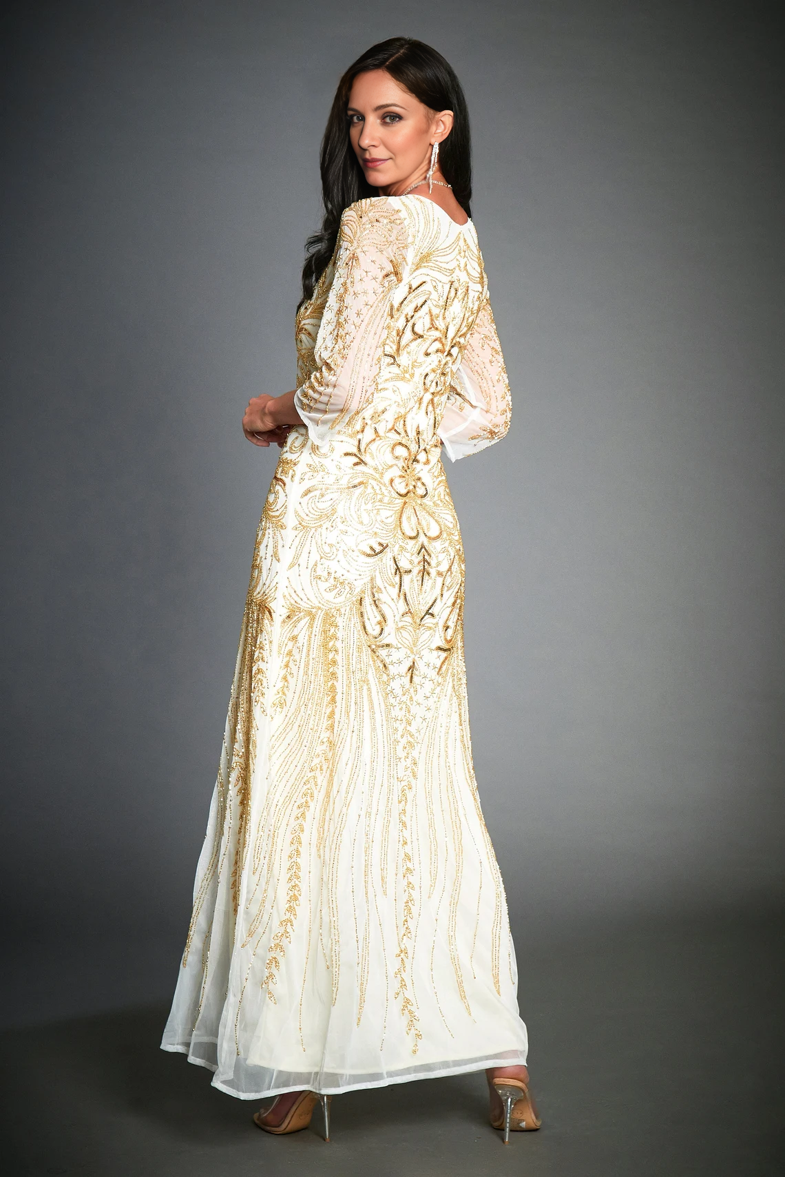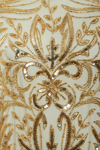 1920s Dress Long Sleeve Art Deco 20s Mother of the Bride Dresse Downton Abbey Gold Evening Dress