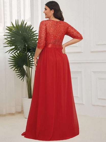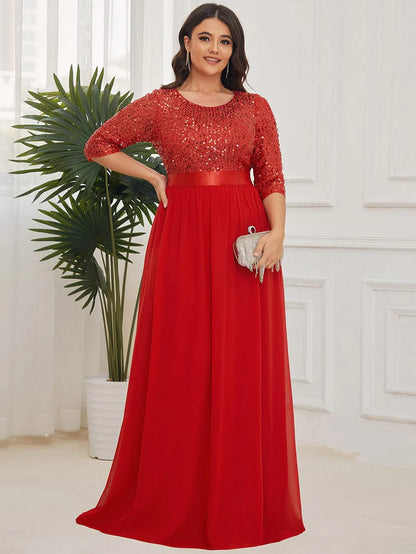 3/4 Sleeves Round Neck Sparkling Evening Dress With Sequin
