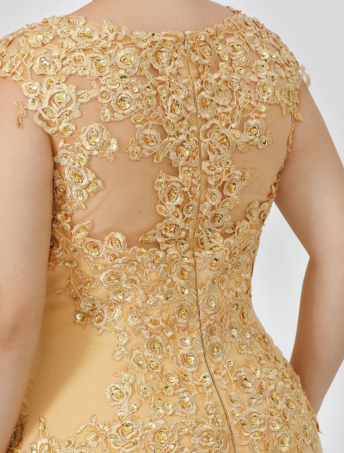 A-Line Mother of the Bride Dress Fall Wedding Guest Dresses Plus Size Elegant Illusion Neck Sweep / Brush Train Chiffon Beaded Lace Short Sleeve with Bow(s) Pleats
