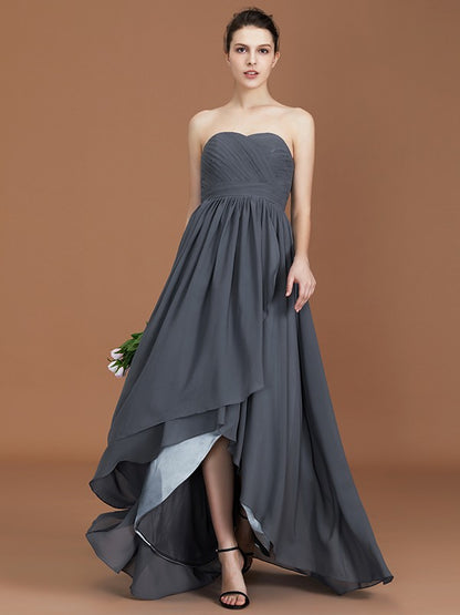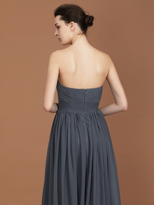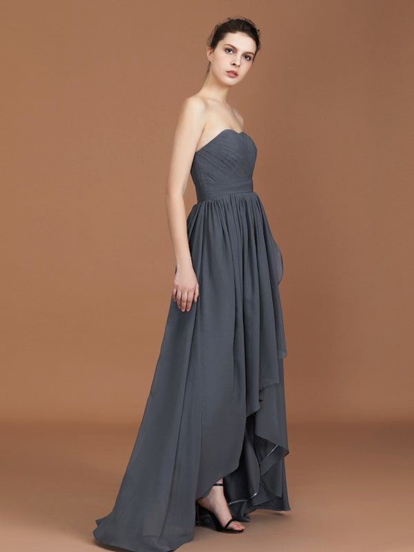 A-Line/Princess Asymmetrical Sleeveless Ruched Sweetheart Floor-Length Chiffon Bridesmaid Dresses