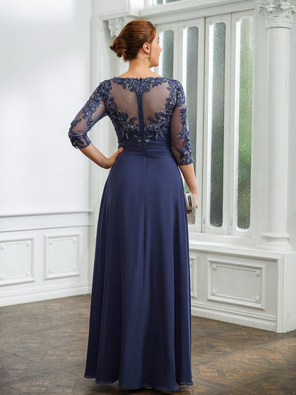 A-Line/Princess Chiffon Applique Bateau 3/4 Sleeves Floor-Length Mother of the Bride Dresses
