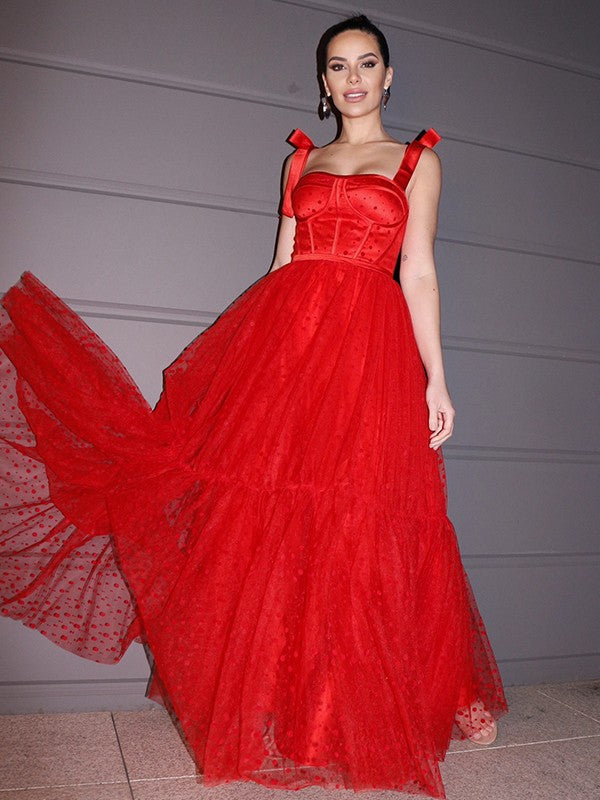 A-Line/Princess Lace Ruffles Square Sleeveless Floor-Length Dresses