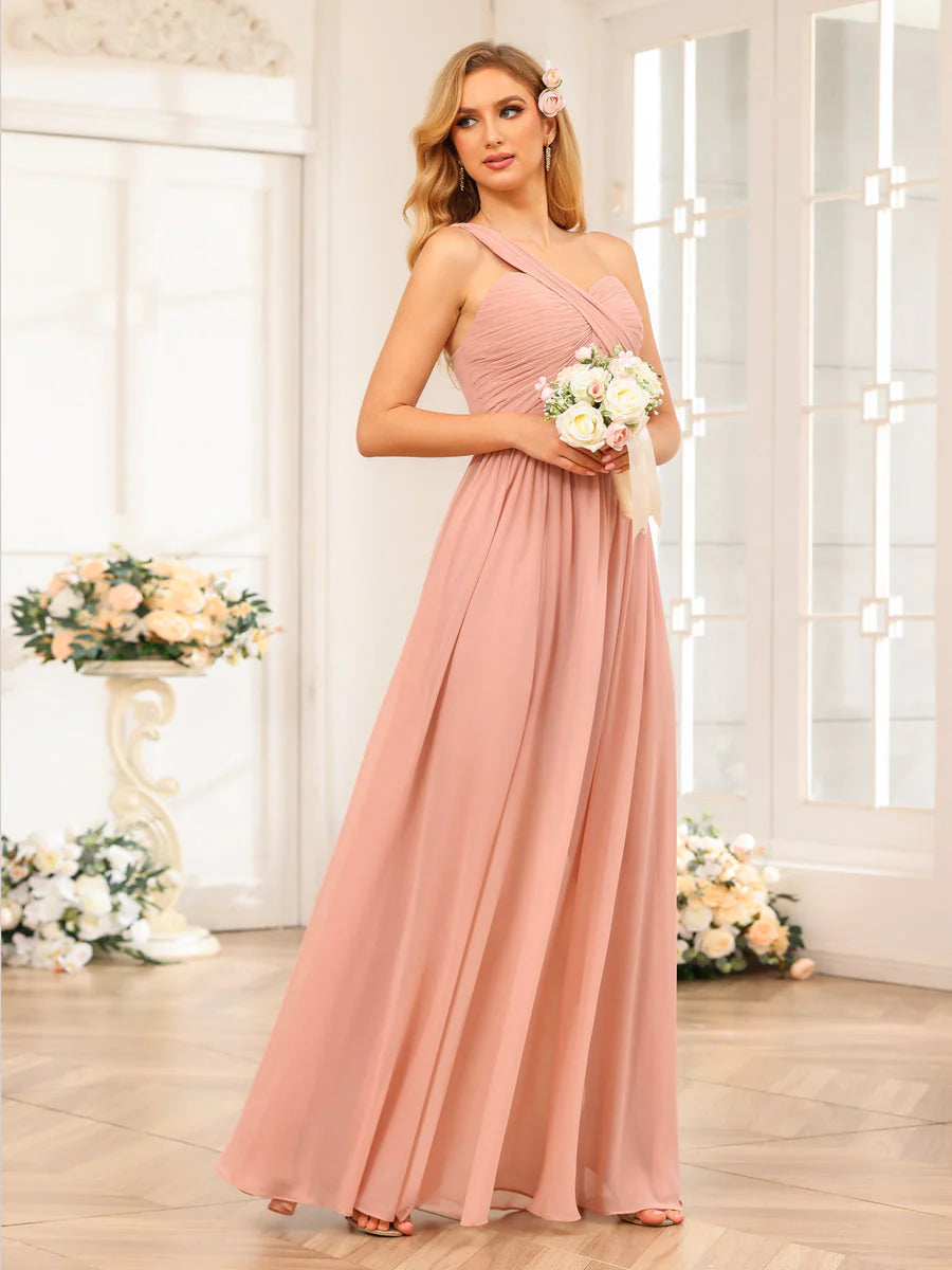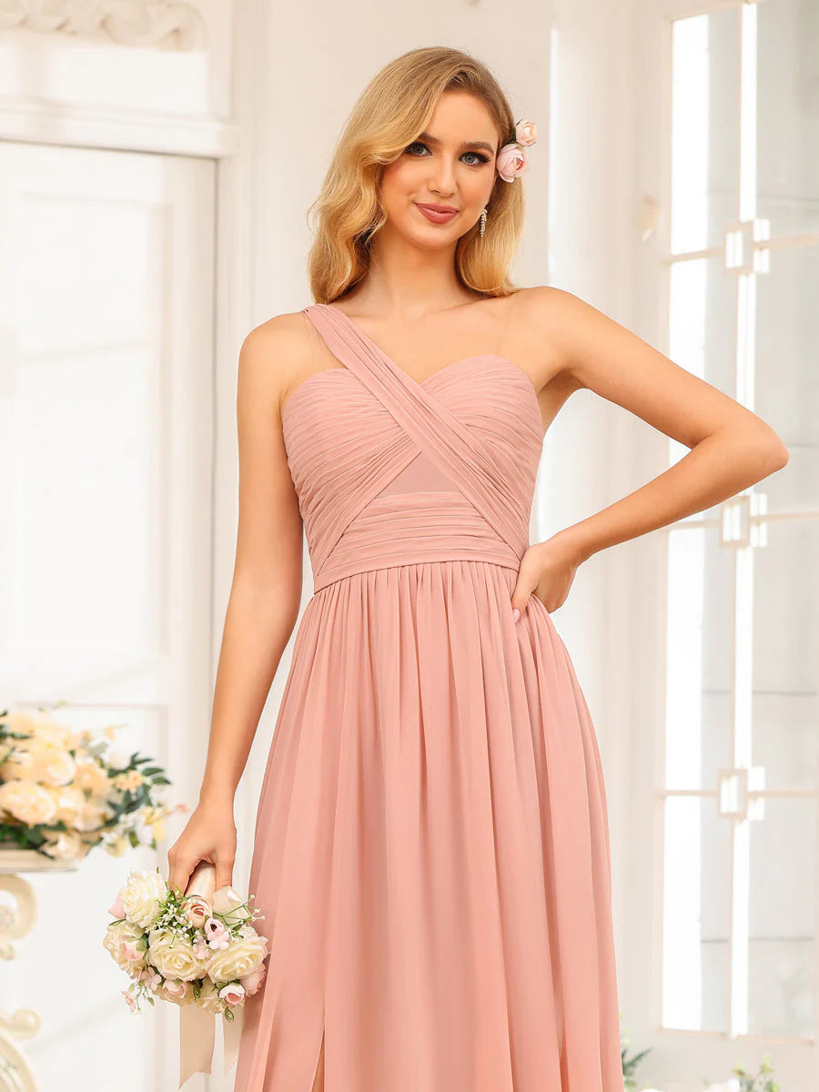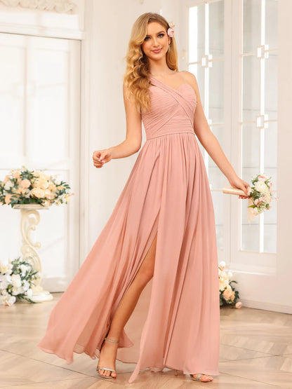 A-Line/Princess One-Shoulder Long Wedding Party Dresses With Split Side