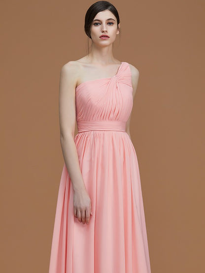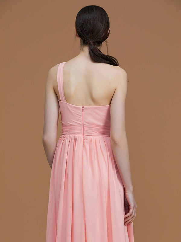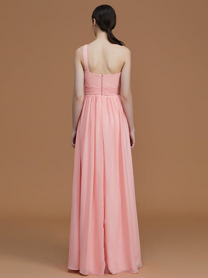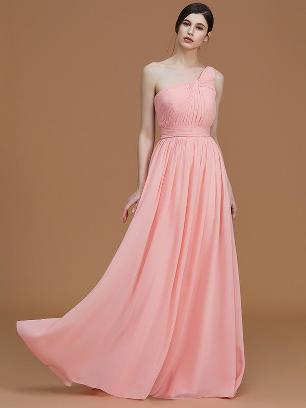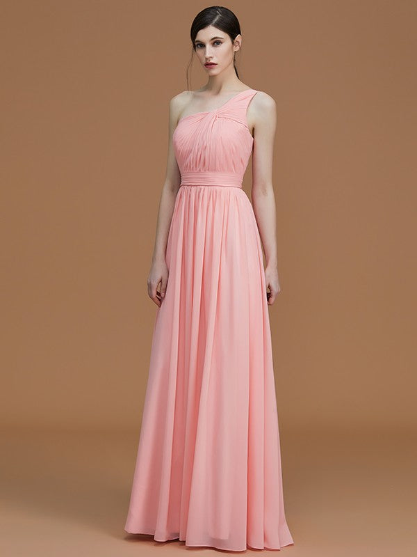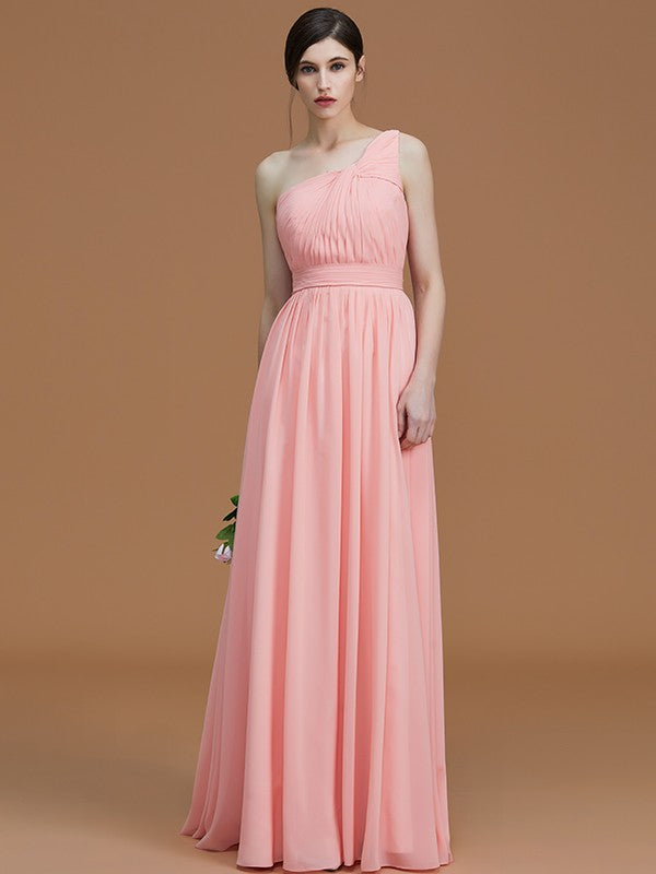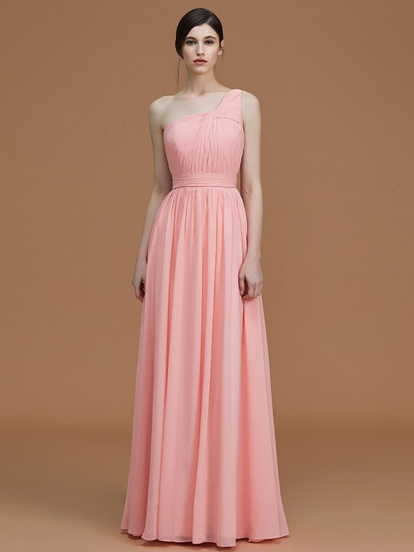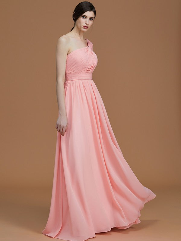 A-Line/Princess One-Shoulder Sleeveless Floor-Length Ruched Chiffon Bridesmaid Dresses