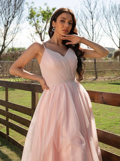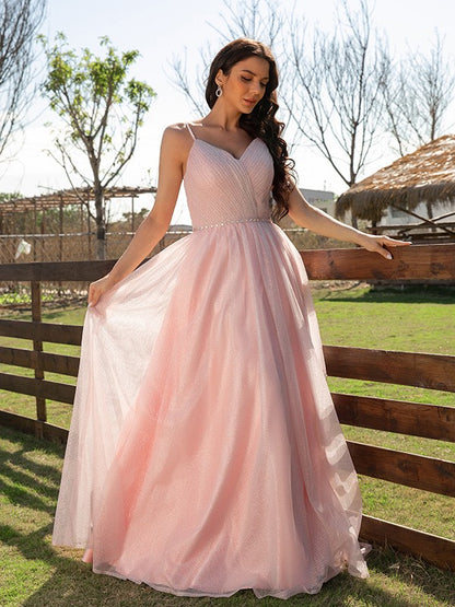 A-Line/Princess Ruched V-neck Sleeveless Floor-Length Dresses