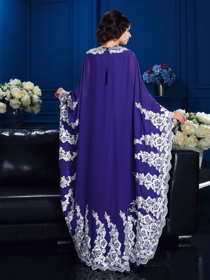 A-Line/Princess Scoop Applique Long Sleeves Long Chiffon Mother of the Bride Dresses
