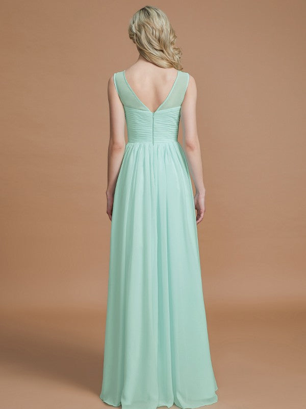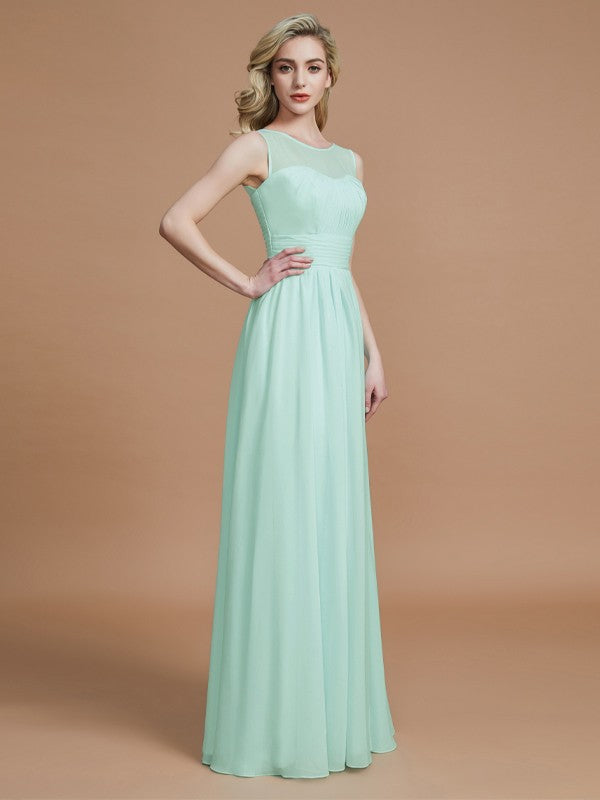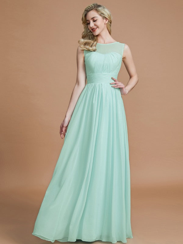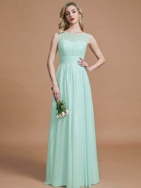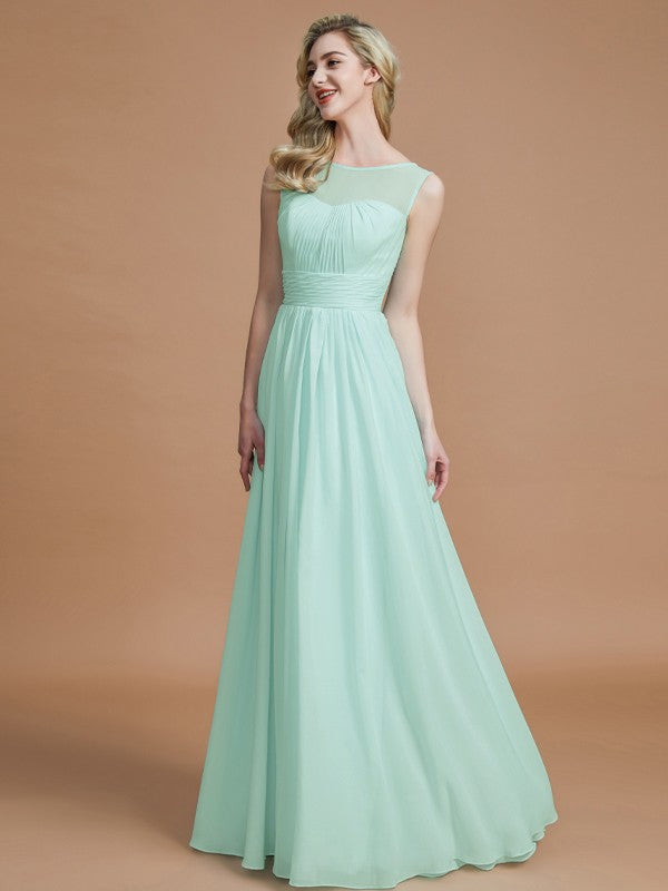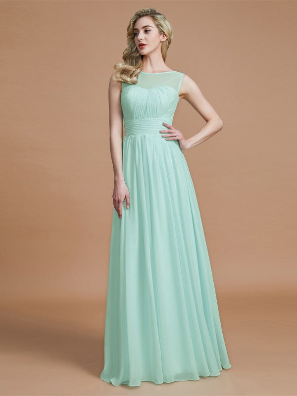 A-Line/Princess Scoop Sleeveless Floor-Length Chiffon Bridesmaid Dresses