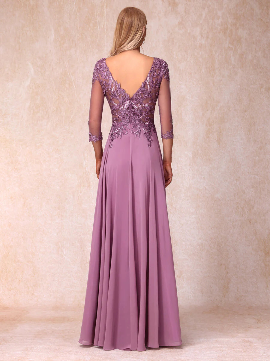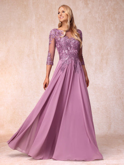 A-Line/Princess Sheer Neck 3/4 Sleeves Long Formal Evening Dresses With Sequins