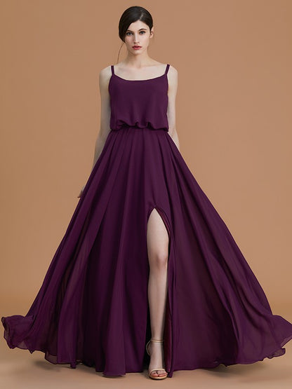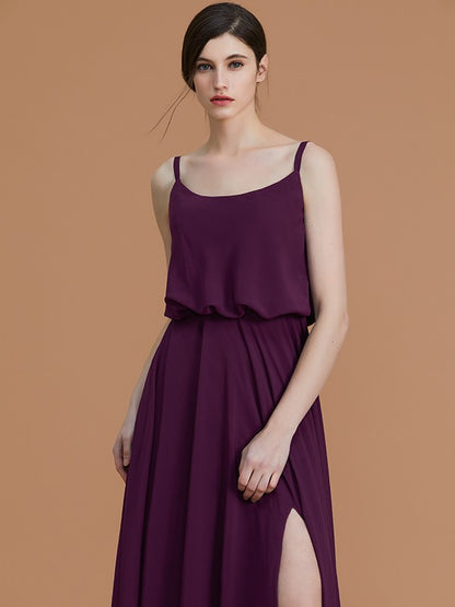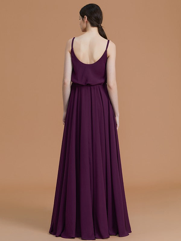 A-Line/Princess Spaghetti Straps Sleeveless Floor-Length Ruffles Chiffon Bridesmaid Dresses
