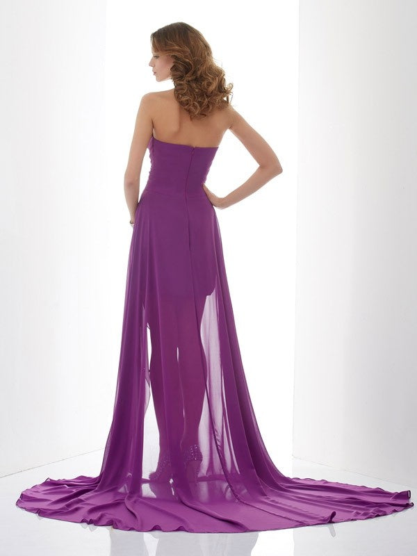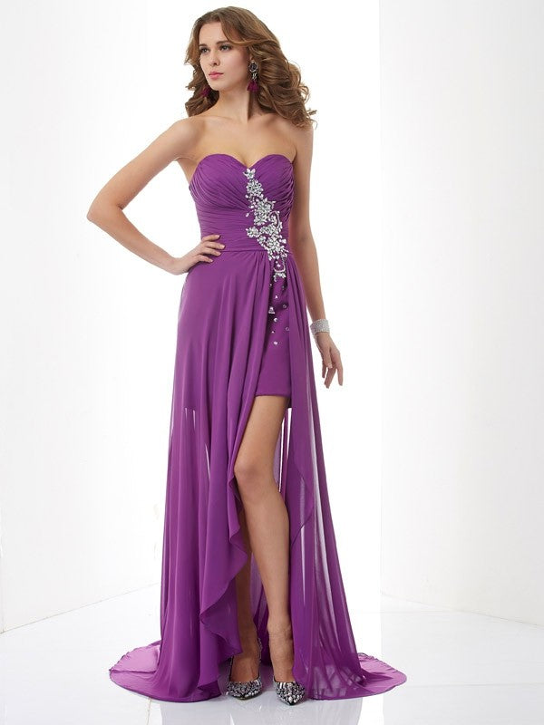 A-Line/Princess Sweetheart Sleeveless Beading Long Chiffon Dresses