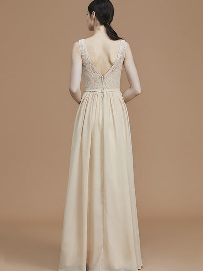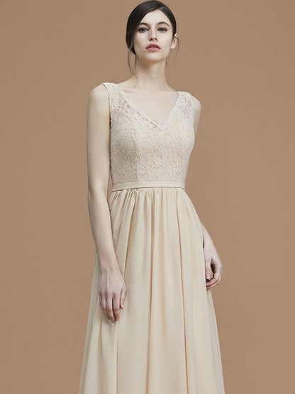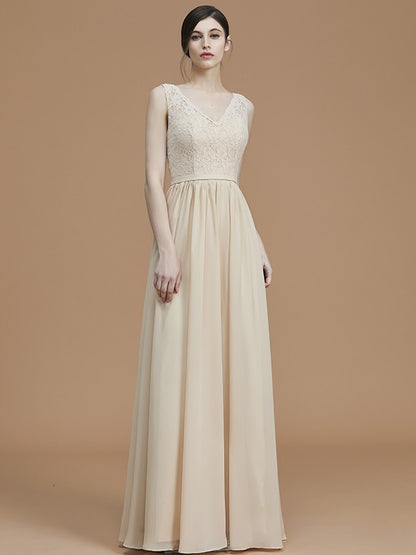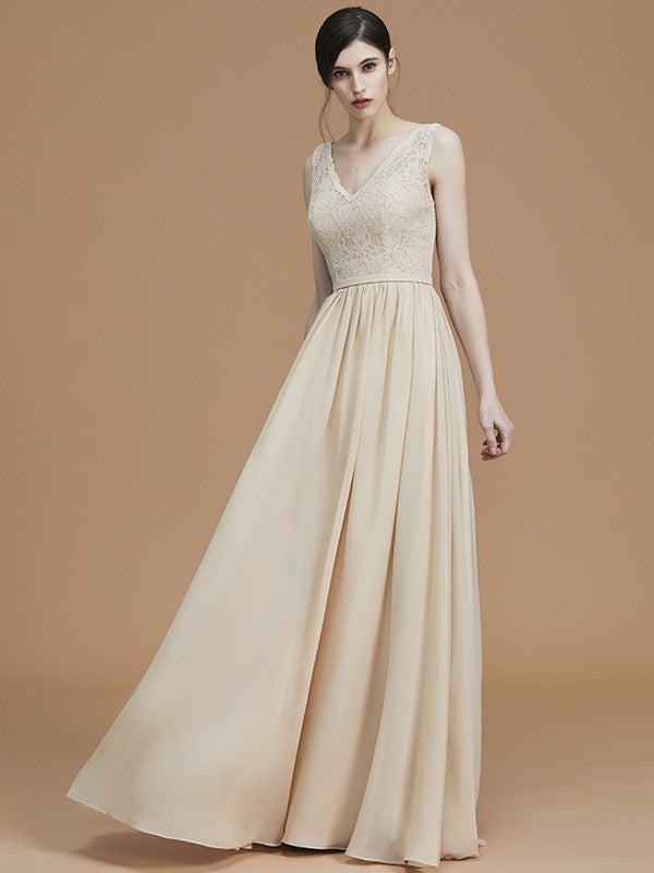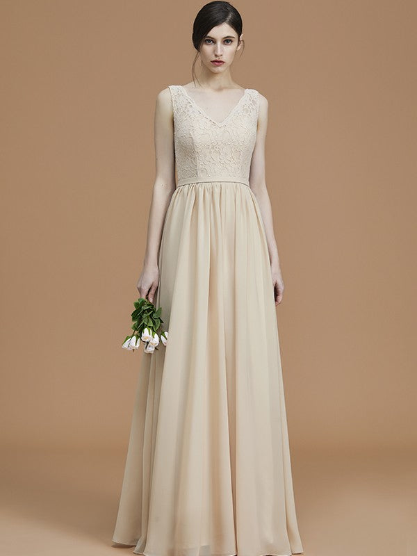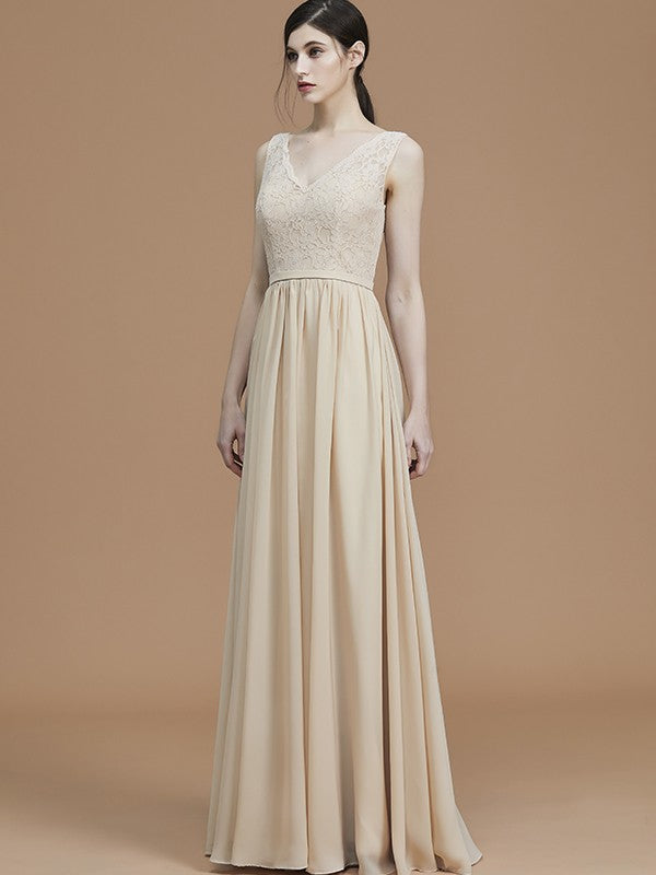 A-Line/Princess V-neck Sleeveless Floor-Length Ruffles Chiffon Bridesmaid Dresses