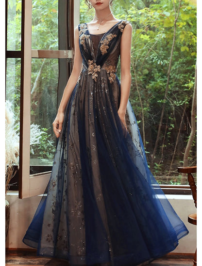 A-Line Prom Dresses Glittering Dress Evening Party Wedding Guest Floor Length Sleeveless Scoop Neck Organza with Sequin