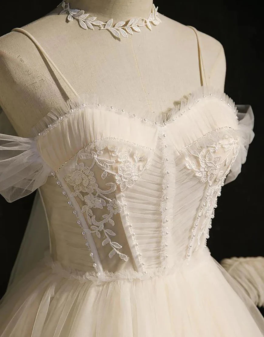A Line Tulle Blue Off The Shoulder Cute Homecoming Dress with Pleated