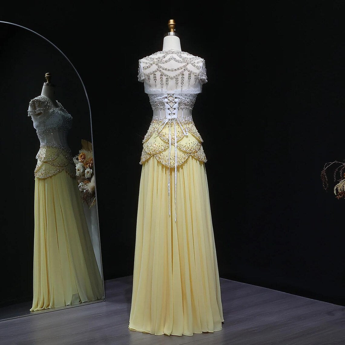 Aurora Pearl Evening Gown Beaded Chiffon Party Dress