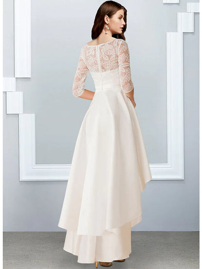 Bachelorette Party Little White Dresses Wedding Dresses Asymmetrical A-Line Half Sleeve Jewel Neck Chiffon With Cascading Ruffles