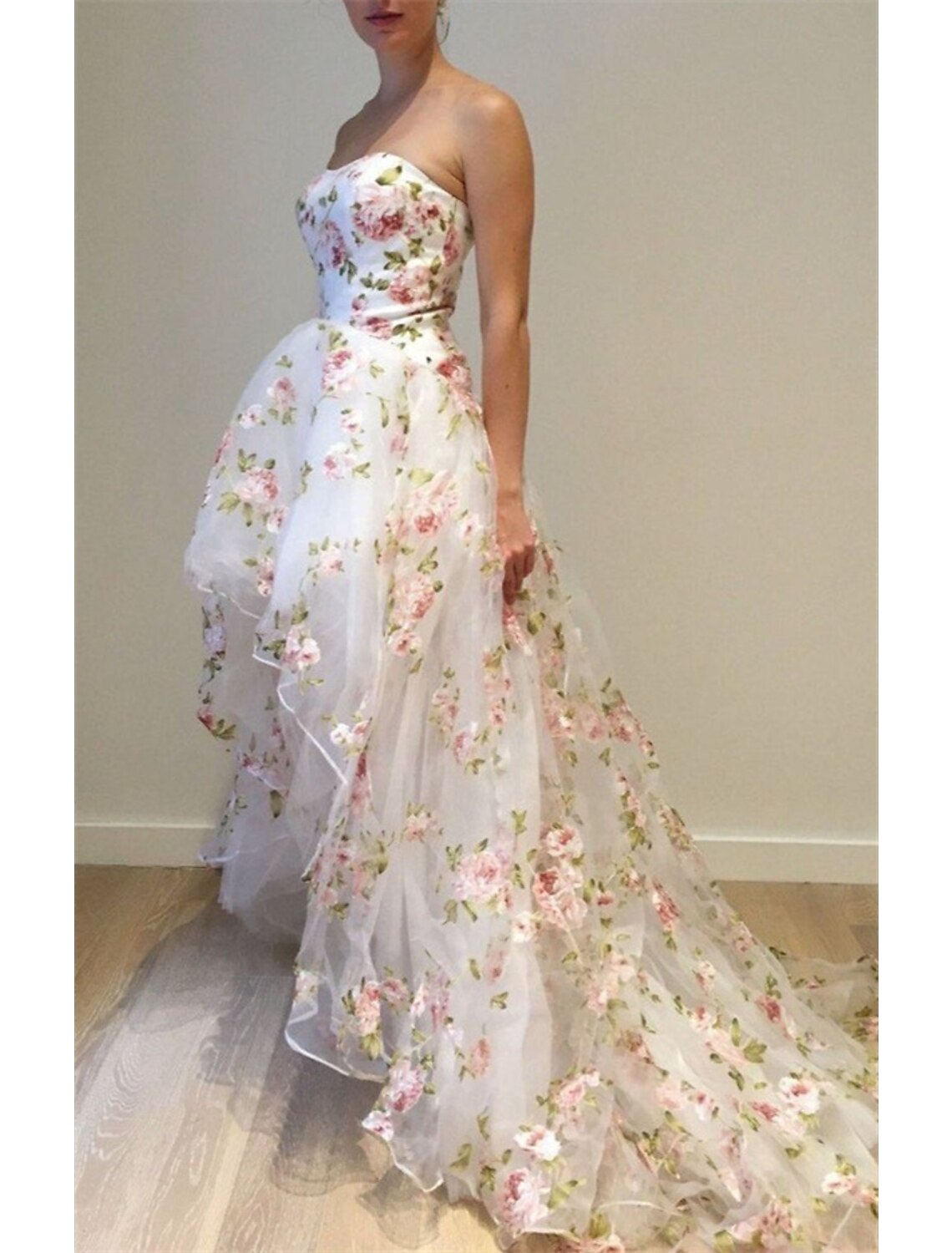 Ball Gown Prom Dresses Floral Dress Quinceanera Wedding Party Asymmetrical Sleeveless Strapless Tulle with Ruffles Appliques