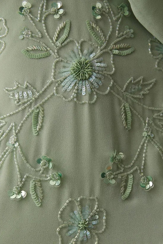 Beaded Sequins V Neck Kimono Midi Dress V-Neck Wedding Guest Dresses Chiffon Mother of the Bride Dresse