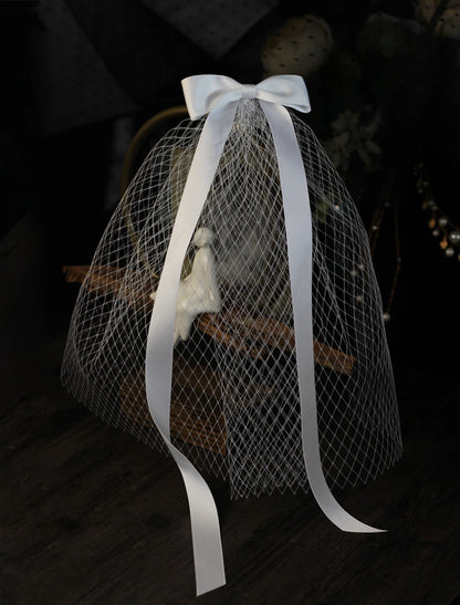 Birthday Wedding Veil Shoulder Veils with Satin Bow Tulle