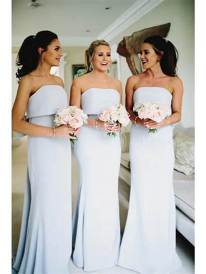 Bridesmaid Dress Strapless Sleeveless Elegant Sweep Brush Jersey with Bow(s) Ruffles