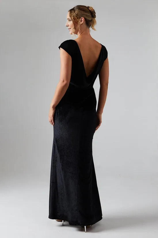 Cap Sleeve Velvet Cowl Back Floor-length Bridesmaids Dress Wedding Guest Dresses