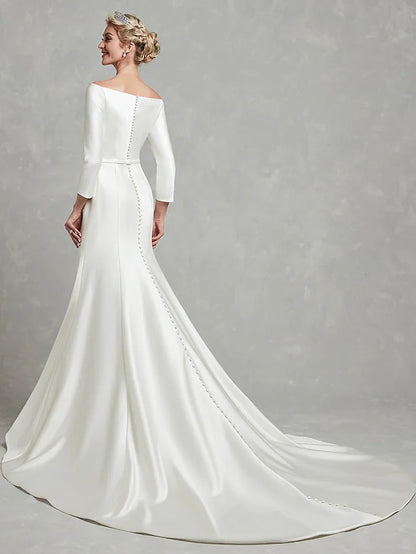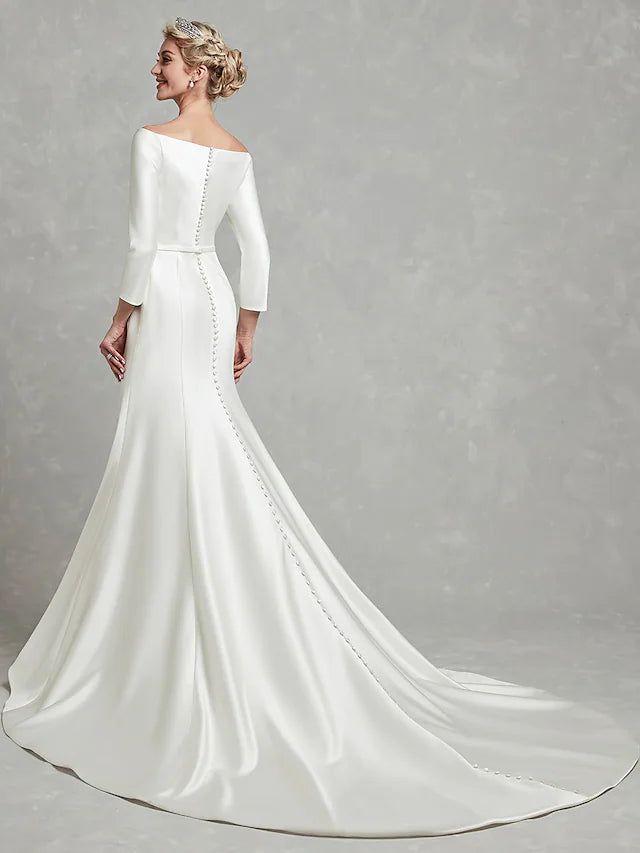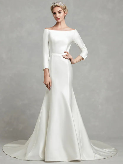 Casual Wedding Dresses Chapel Length Sleeve Strapless Satin With Pleats