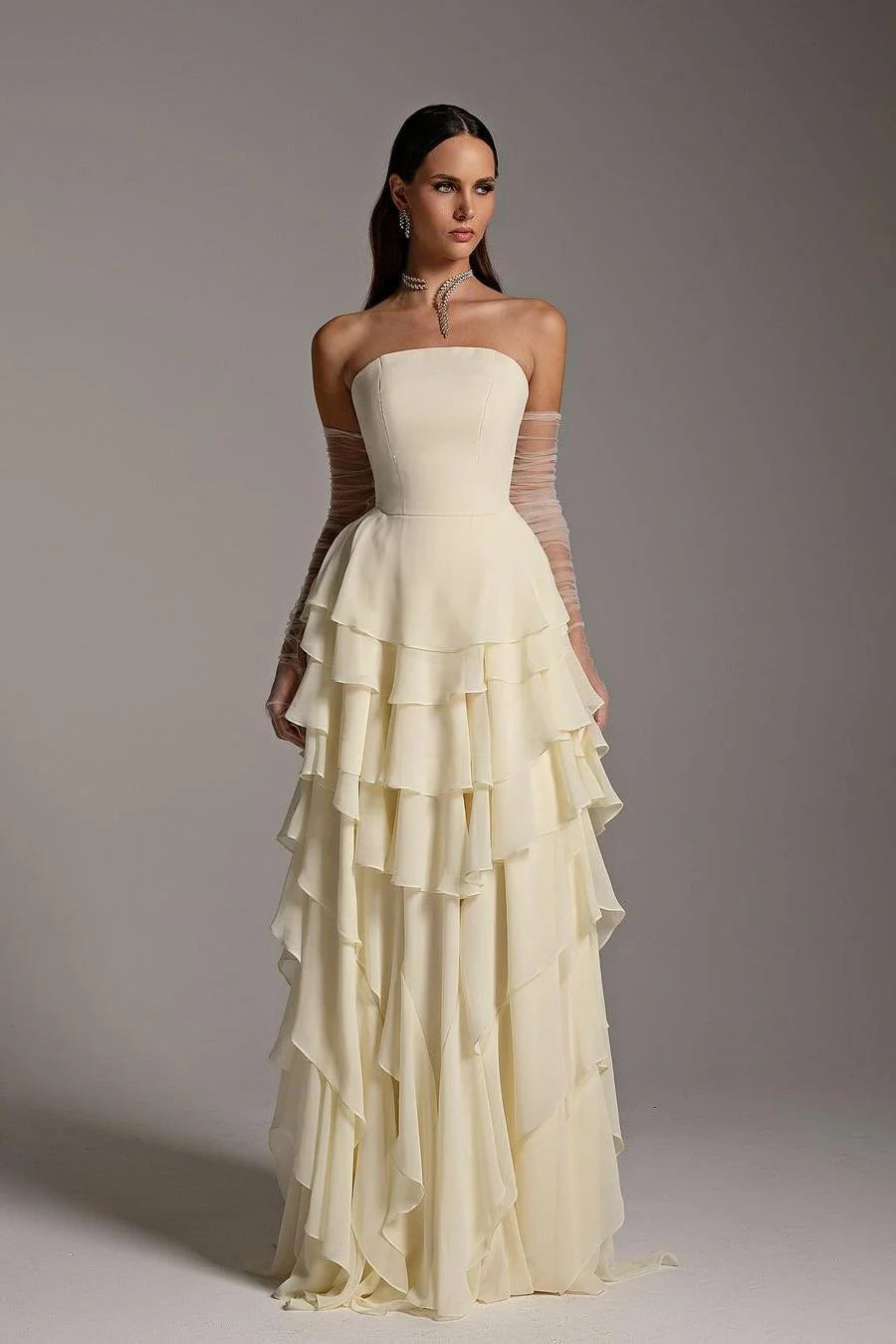 Charming Strapless Sleeveless Ruffles Long Prom Dress