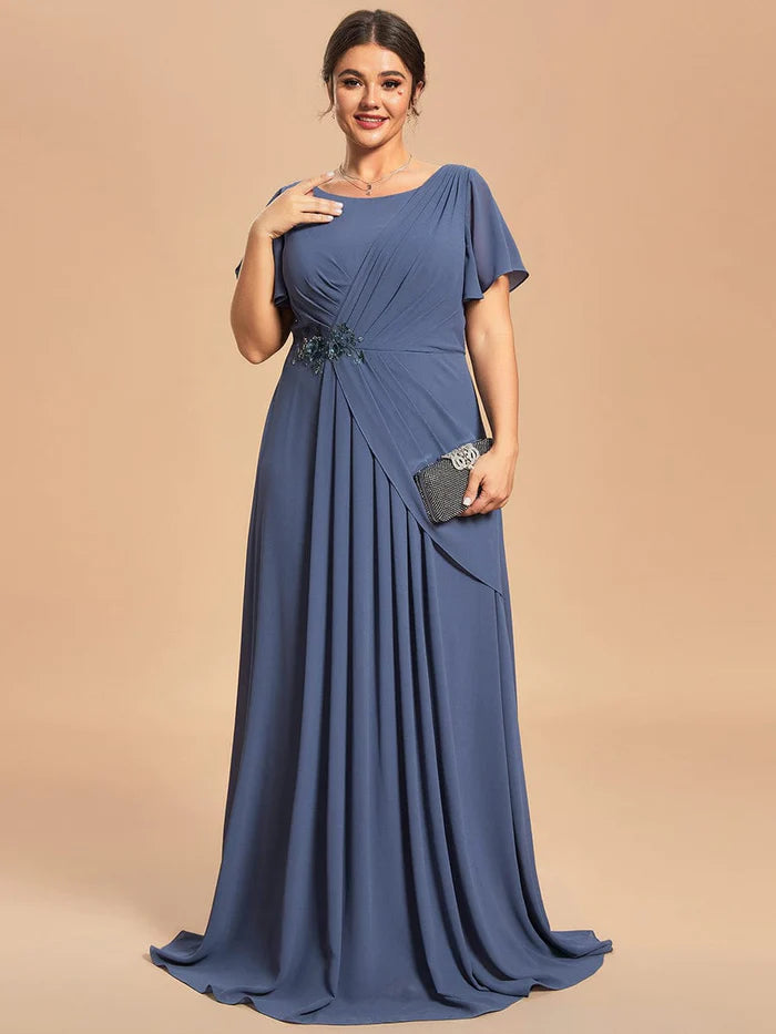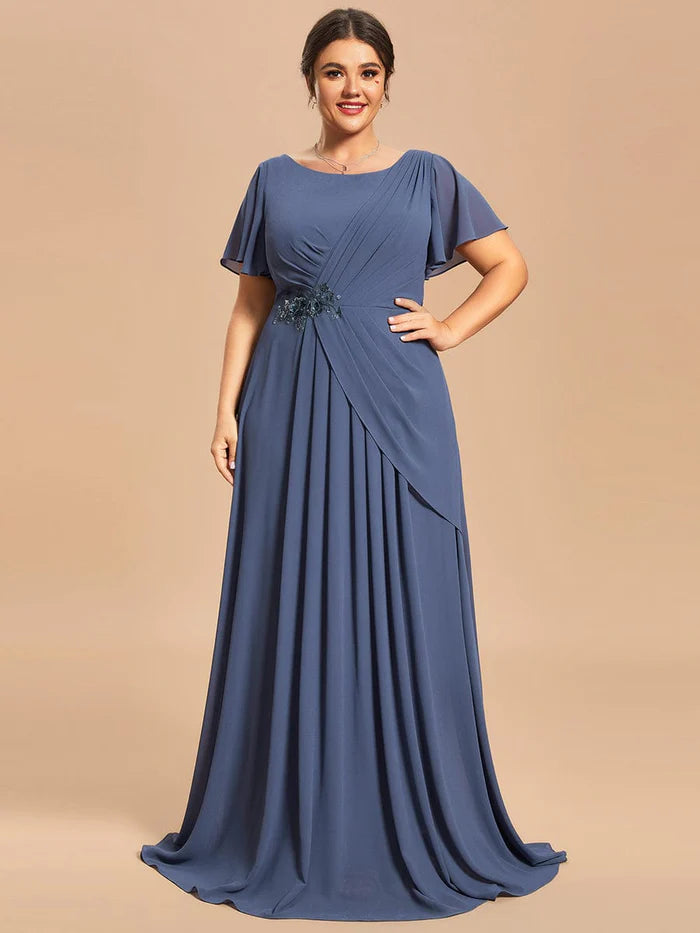 Custom Size Simple Pleated Chiffon A-Line Maxi Mother of the Bride Dress
