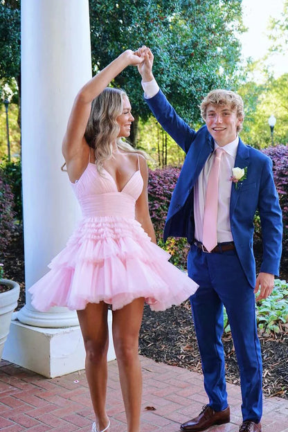 Cute A-Line Pink Tulle Short Homecoming Dresses